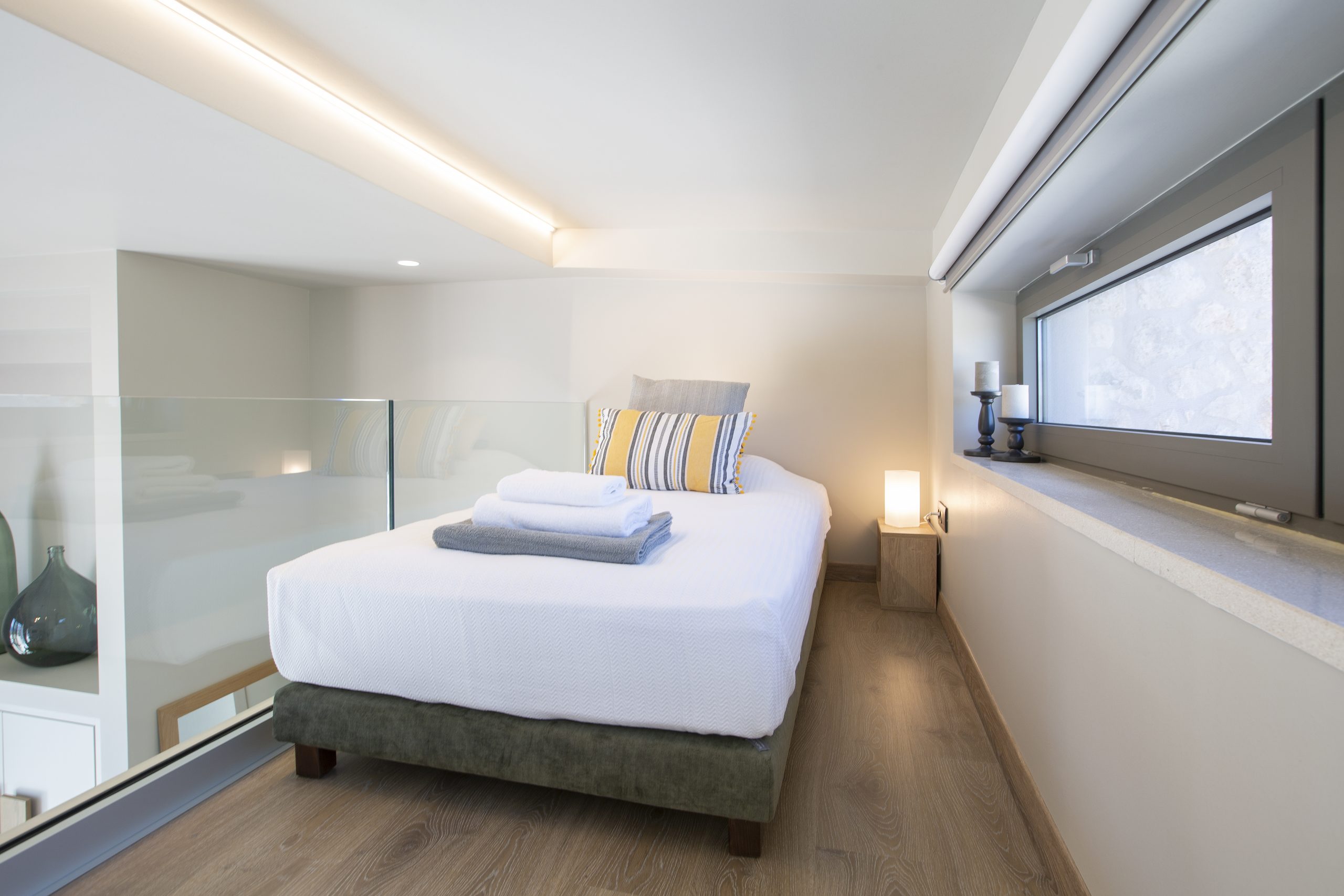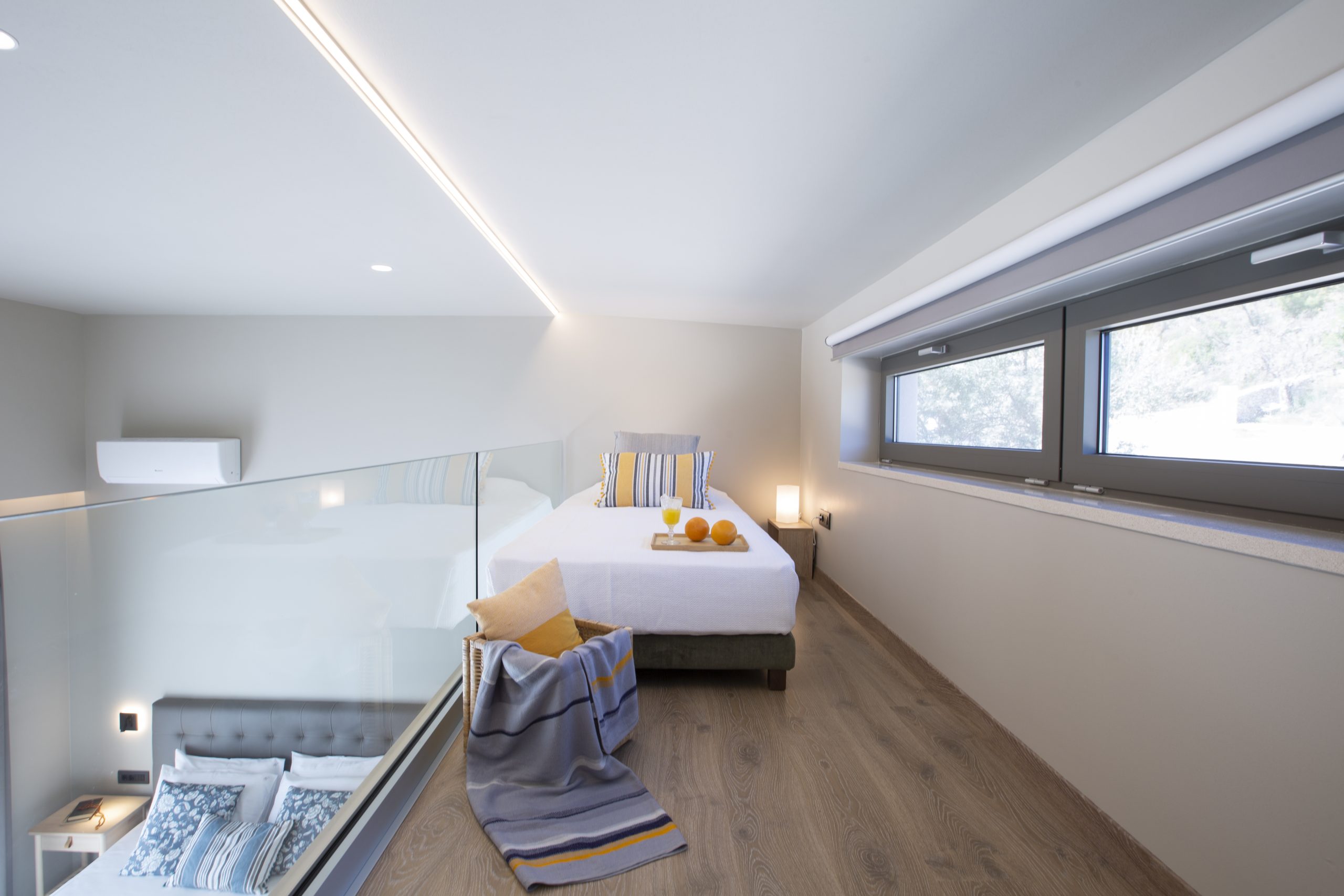 Δυο πατάρια-λόφτ με μονά κρεβάτια προσβάσιμα με εσωτερική σκάλα τύπου ‘πάπιας’ ιδανικά για δύο επιπλέον επισκέπτες.